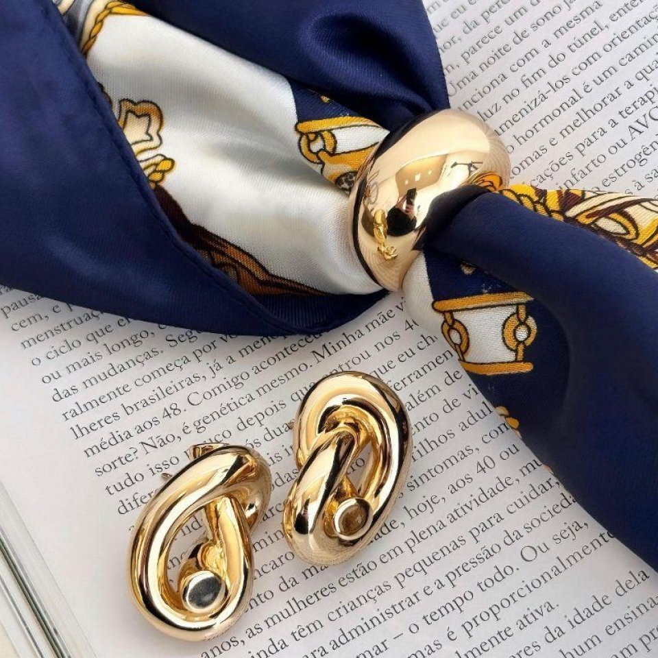 Este brinco apresenta um design de nó fluido e orgânico, simbolizando conexões e elegância contínua. Sua estrutura em formato de botão abraça o lóbulo com um volume moderno e acabamento polido de alto brilho, refletindo a luz de maneira sofisticada. É uma peça que equilibra a estética clássica com um toque contemporâneo de "art jewelry".